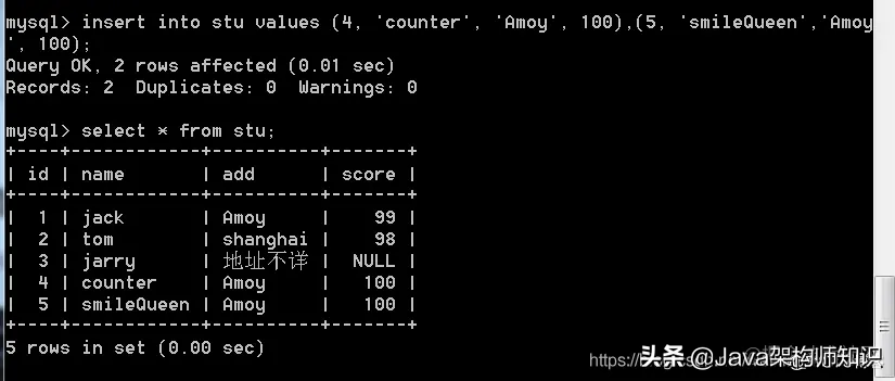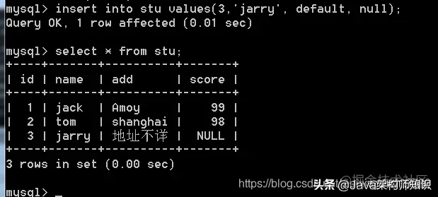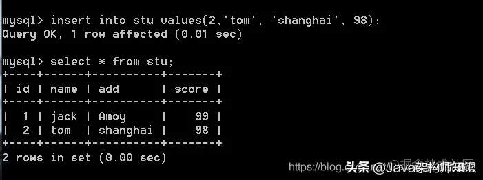 字段名可以省略,代表全有字段有需要插入,不过在values值那里,必须要与字段关系一一对应: