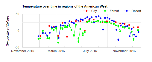 最后显示的效果就是上图,城市,森林和荒漠的不同时候的温度