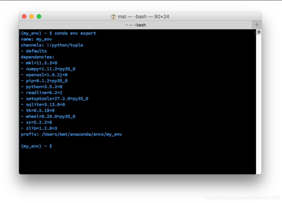 共享环境这项功能确实很有用,它能让其他人安装你的代码中使用的所有包,并确保这些包的版本正确。你可以使用 conda env export > environment.yaml 将包保存为 YAML。命令的第一部分 conda env export 用于输出环境中的所有包的名称(包括 Python 版本)。