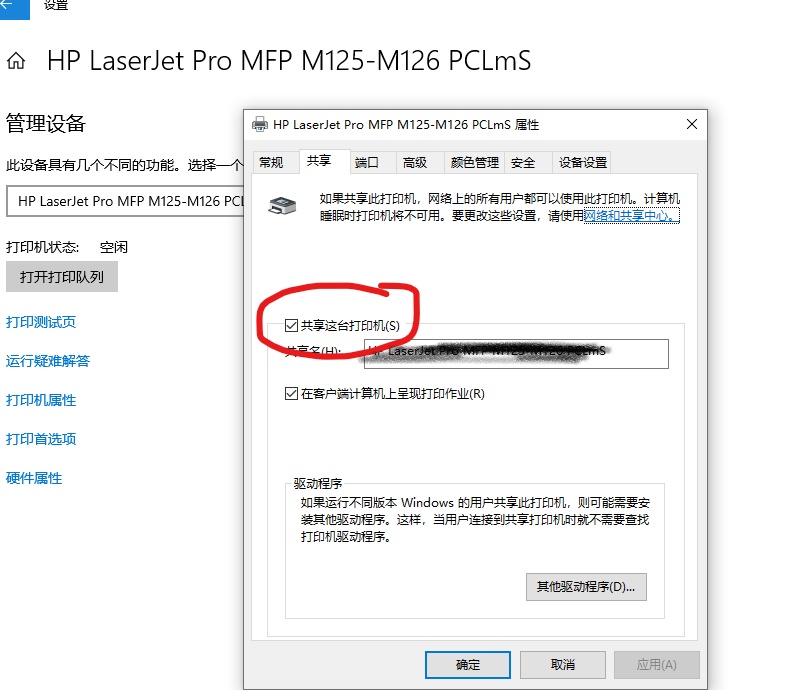 一、首先电脑连接打印机,把所连接的打印机设置为共享,如下图所示: