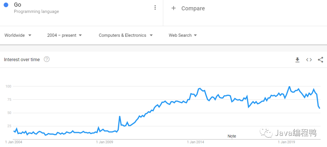 在2014年左右达到顶峰后,Go多年来一直在Google搜索量中保持一致。Go是当前在Cloud平台(例如Google Cloud Platform和Microsoft Azure)上最受欢迎的编程语言之一。
