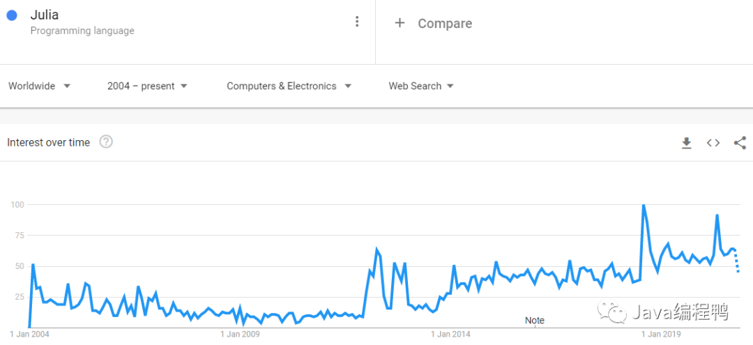 从图3可以看出,在过去的几年中,茱莉亚到目前为止Google搜索的整体数量在增加。