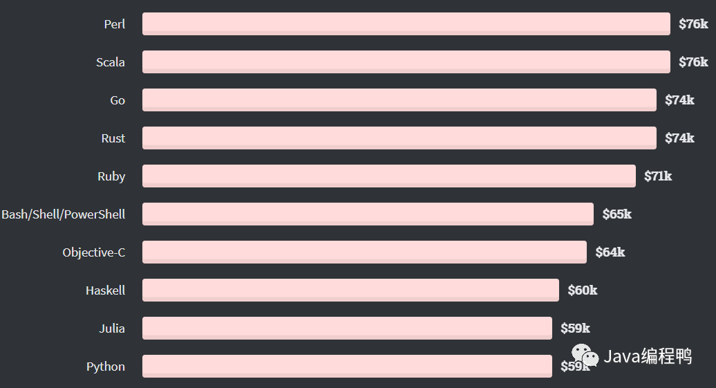 此外,根据Stackoverflow开发人员调查,这是2020年排名前10位的付费编程语言(图2)。