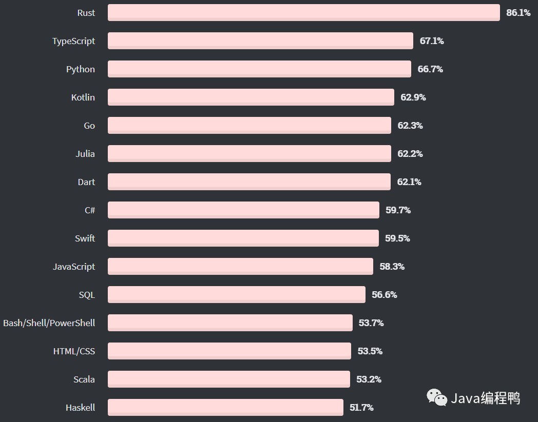 根据2020年Stackoverflow开发人员调查[2],以下编程语言是2020年开发人员最喜欢的语言(图1)。作为本文的一部分,我们将考虑其中的5个。