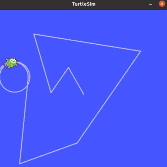 rostopic pub -r 10 /turtle1/cmd_vel geometry_msgs/Twist "linear: x: 1.0 y: 0.0 z: 0.0 angular: x: 0.0 y: 0.0 z: 1.0"上述命令中-r 10表示以每秒10次的频率发布话题,(若无-r 10,则小海龟运动一段距离后就会停下)geometry_msgs/Twist表示消息结构,其后面的内容是具体数据(包括角速度、线速度)。运行上述代码的结果如下:小海龟做圆周运动。