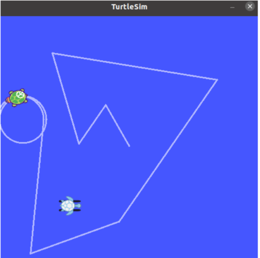 产生turtle2后,我们可以再次使用rostopic list 来查看话题列表,会发现话题变多了,同样我们也可以发布话题来控制海龟2的运动。