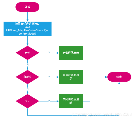 先来实现我们的定速巡航与自适应巡航。当定数巡航被激活是,HUD上面显示“[ ]”,当车辆检车到前方车辆切换自适应巡航时,图中[]中小汽车图标出现,表示当前工作模式为自适应巡航。当前车消失是,小汽车图标消失,表示切换为定速巡航模式,以我们给定的速度定速实行。实现方式简单,这里就不画流程图了,还是补上流程图吧