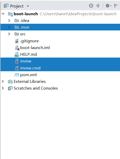 项目创建过程可能因为maven依赖项较多,下载时间比较长,耐心等待。项目构建完成之后删掉下面的这几个文件,这几个文件是maven版本控制相关的文件。我们结合IDEA管理maven,一般来说这几个文件用不到。