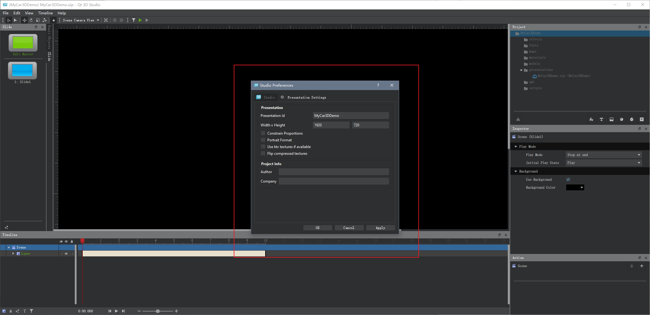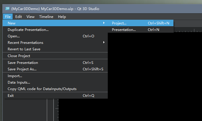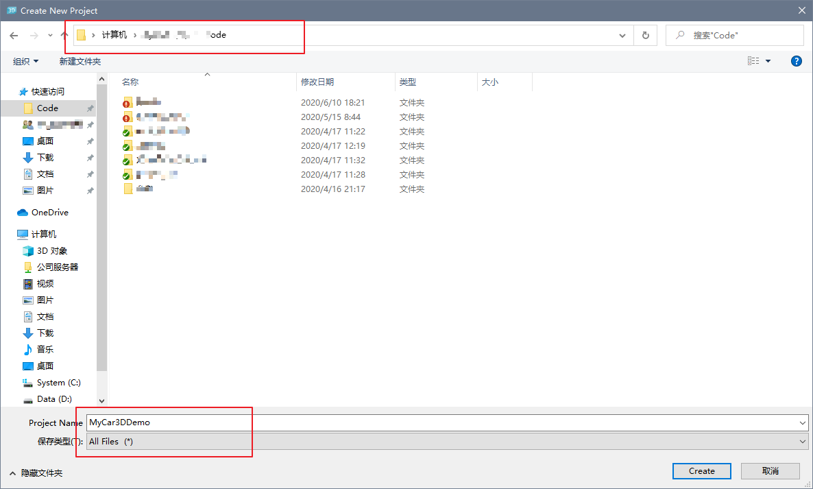 第一步,新建一个工程MyCar3DDemo,借助Qt 3D Studio 和电脑爸爸申请一个空间,来存放我们的资源。