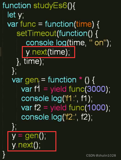 var y = yuanku(); //调用此函数,并不会立即执行它其中的代码,而是返回一个遍历器对象