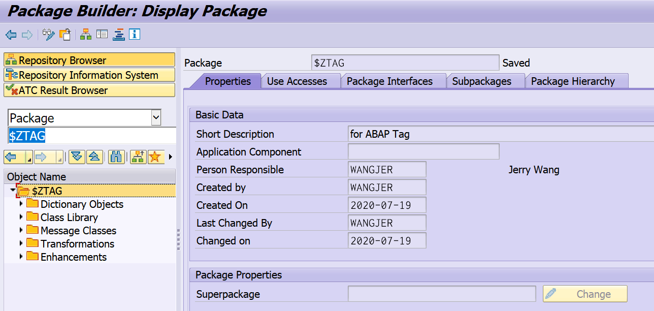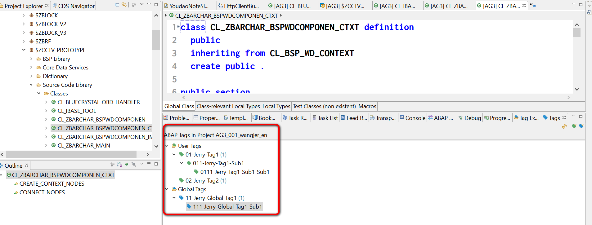 和云笔记的标签系统一样,ABAP Development Tool里的标签管理也支持树状的层级结构。