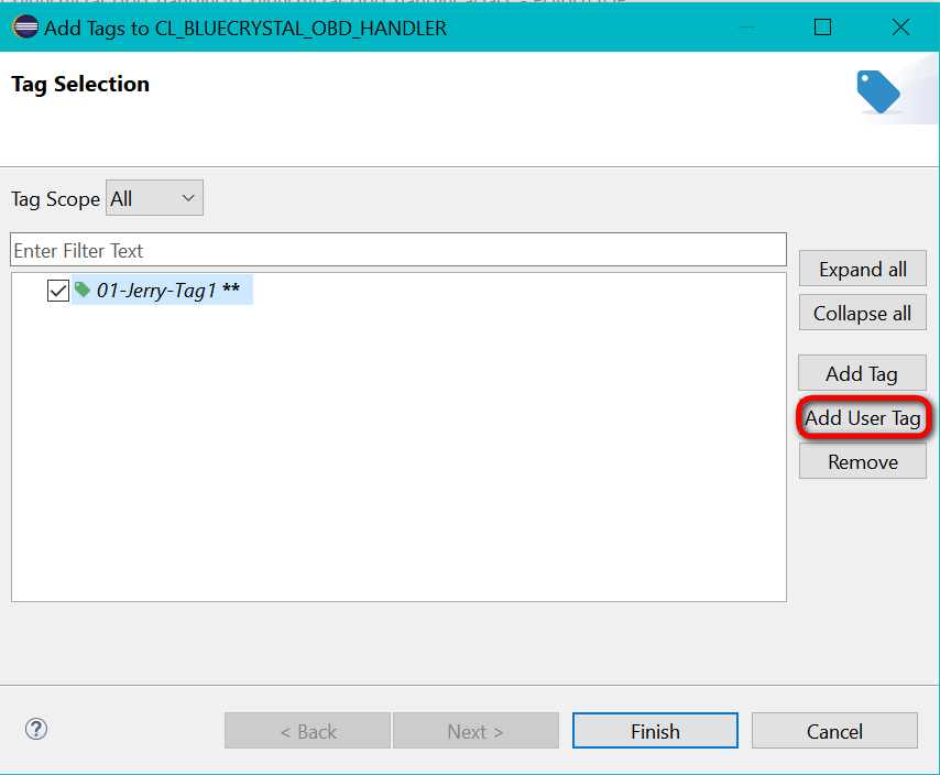 通过Add Tag和Add User Tag按钮管理标签结构,每个ABAP系统都有一个全局的标签系统(Global Tag), 这些标签在同一ABAP系统里所有登录用户均可见。也可以创建只有自己可见的User Tag: