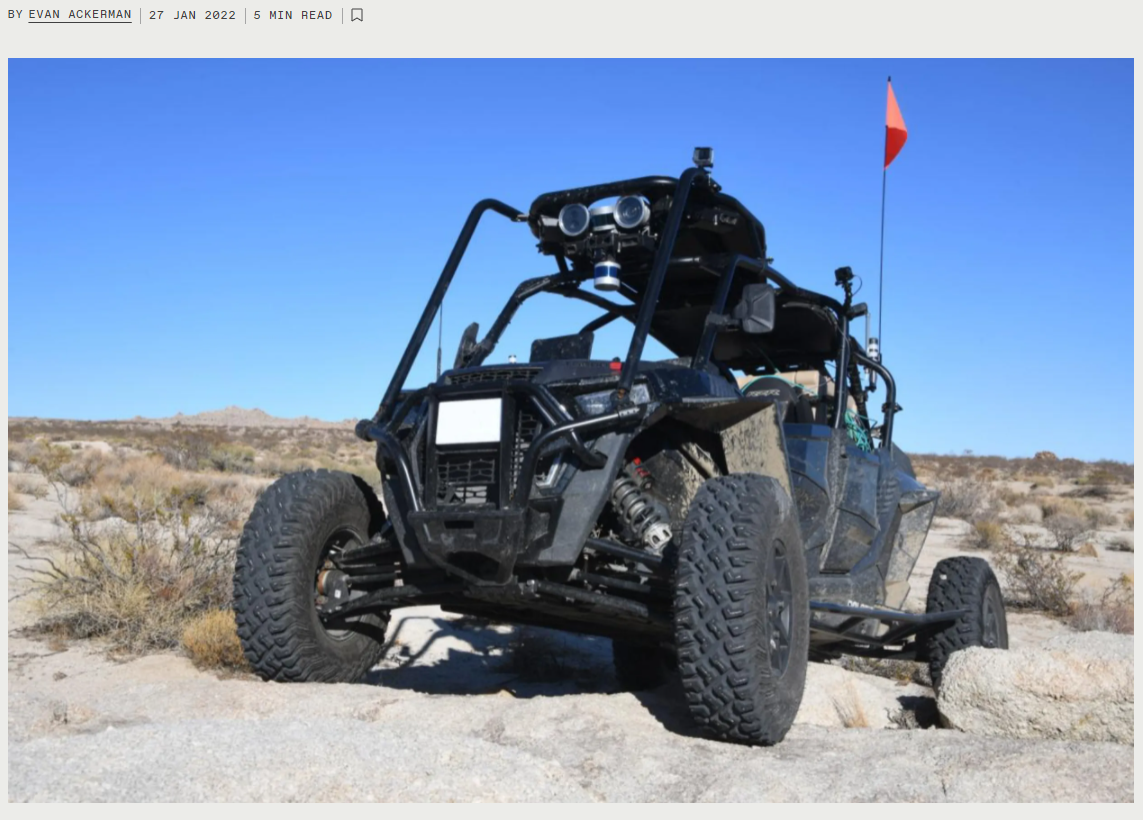 对于人类来说并不容易,对于自动驾驶者来说更难。地形很复杂——例如,你如何判断哪些灌木丛是安全的?也许能够从以前的车辆上发现轮胎痕迹会有所帮助,但无论如何,这都是一个具有挑战性的视觉问题——以及一个潜在的欺骗性问题。你如何规划一条关于前方信息有限的路线,即使前方只有几十米?这些只是新项目面临的一小部分挑战,与铺设道路上的自动驾驶汽车已经掌握或试图掌握的完全不同。以下是 DARPA 对此的看法: