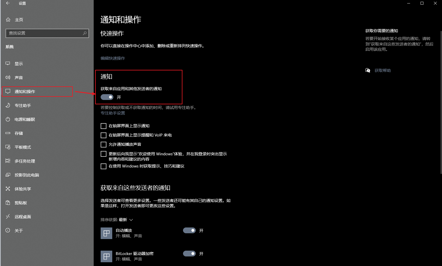 中间有个小插曲,我看发现我在启动了托盘类ShowMessage()这个函数的时候,电脑没有任何反应,我还以为是我的代码问题,或者是win10 的版本问题(专业工作站版本),原来毛病出自这里