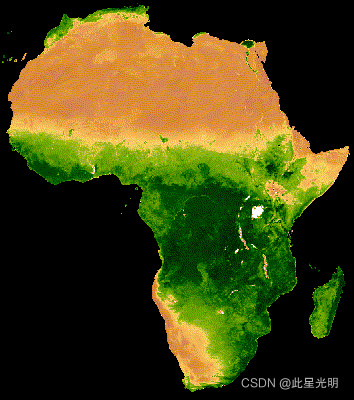 MODIS是一种中等分辨率的卫星成像系统,NDVI 是一种常见的基于反射率的植被指数。 为方便起见, 地球引擎数据目录 提供 NDVI 作为预先计算的 数据集。在上面的动画中,NDVI 被映射到从棕褐色到深绿色的颜色渐变,代表低到高的光合能力(低到高的植被覆盖/密度/生产力)。植被中类似潮汐的纬度变化与全年相对于赤道在北纬 23.5° 和南纬 23.5° 之间移动的太阳偏角有关。