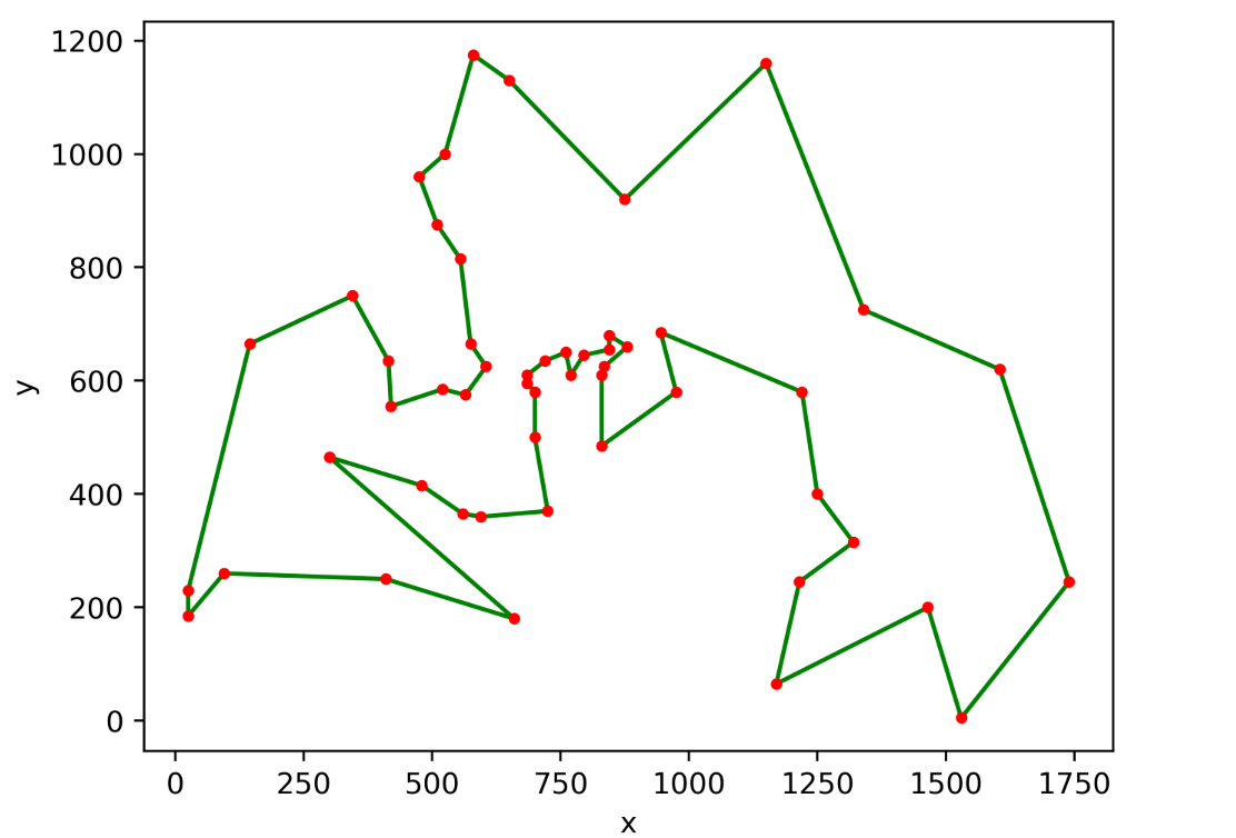 tabu.append(tabu[0])                                           # 每次迭代完成后,使禁忌城市下标列表形成完整闭环