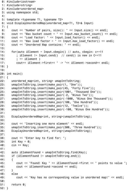 从使用的角度看,这两种容器与std::map和std::multimap差别不大,可以类似的方式执行实例化、插入和查找。然而,一个重要的特点是,unordered_map包含一个散列函数,用于计算排列顺序: