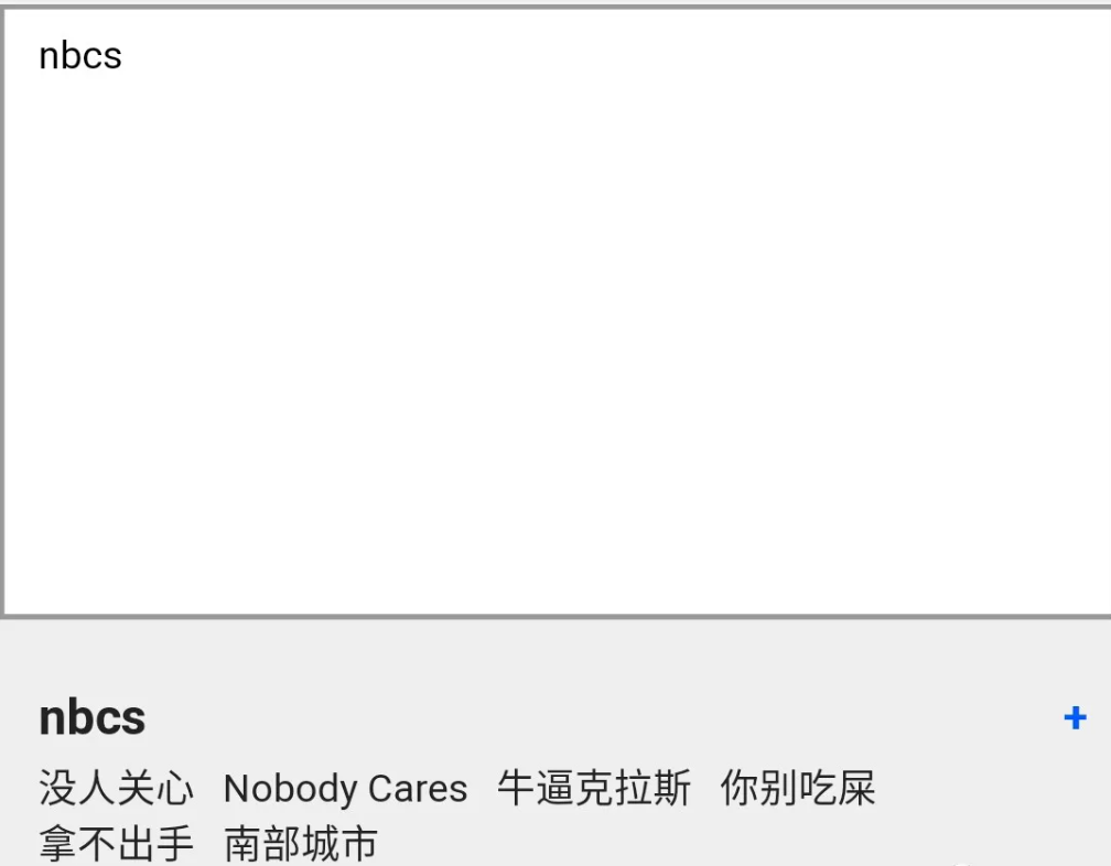 就会告诉你可能是“处对象”,也可能是“陈独秀”。像“nbcs”这种来自英文的缩写也没问题:
