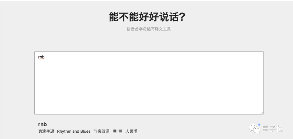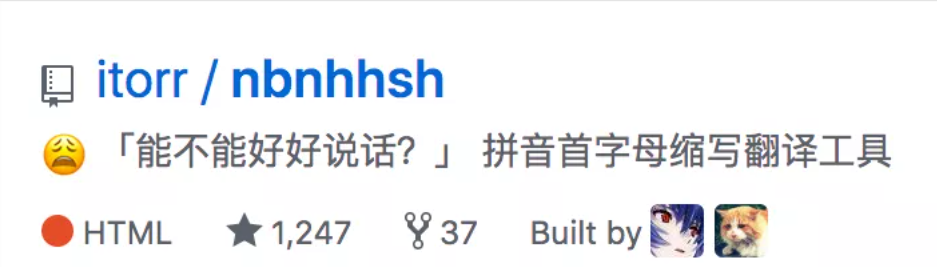 然后第二天忘得一干二净。90后中年人的记忆力和语言环境,毕竟不能和00后年轻人比啊。但90后中年人,熟练的掌握了技术手段,一款00后黑话翻译插件,也就这样诞生了。它的名字叫做:能不能好好说话,简称nbnhhsh。它可以直接把那些迷惑的缩写翻译成人话,甚至还可以作为网页插件直接划词翻译,在B站、微博、贴吧这些00后聚集的平台都可以使用。而且,还在GitHub开源了,已获得1200颗星,登上了GitHub热榜。