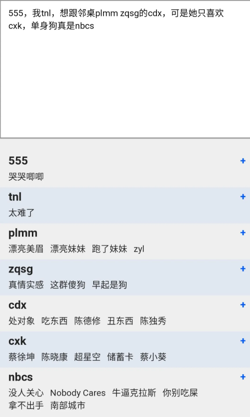 555,我tnl,想跟邻桌plmm zqsg的cdx,可是她只喜欢cxk,单身狗真是nbcs