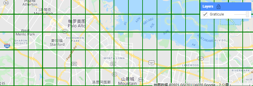 Map.addLayer(grid.updateMask(grid), {palette: '008000'}, 'Graticule');