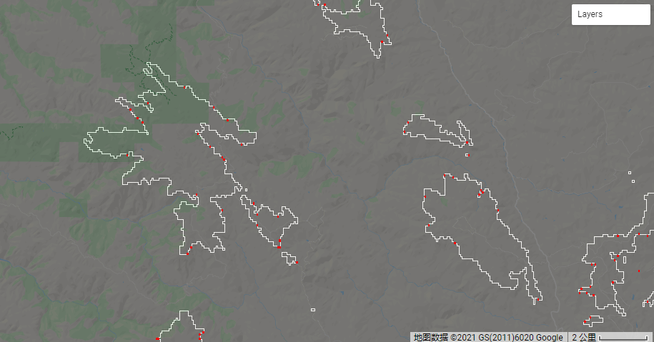 Map.addLayer(image, {min: 0, max: 1, opacity: 0.5}, 'Crossing 1000m');