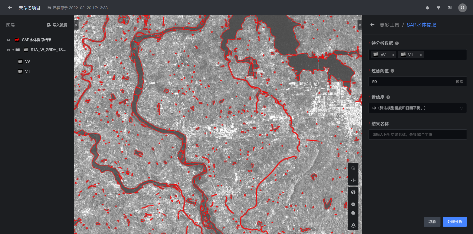 通过AI技术智能解译遥感影像,提取其中水体区域,建议使用Sentinel-1 GRD数据集或高分三号雷达数据。
