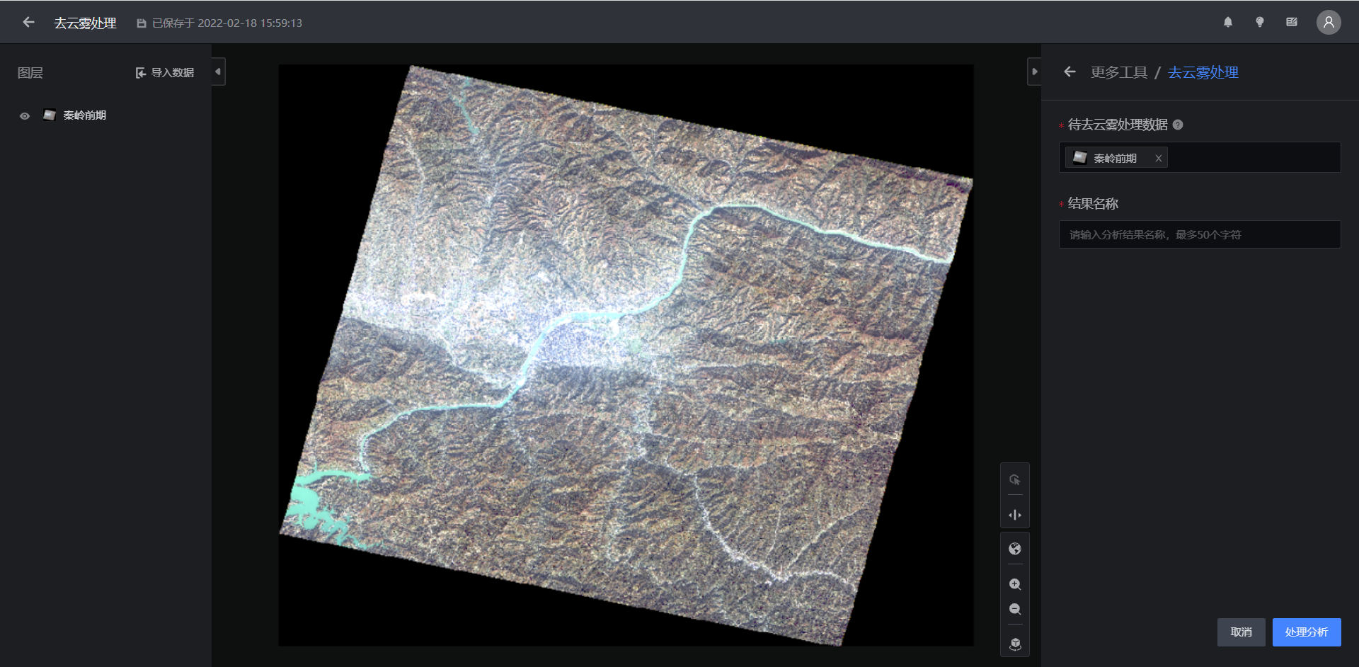 通过AI算法,针对云量较大的影像,提供影像去雾增强处理,支持0.5m-2m分辨率范围。