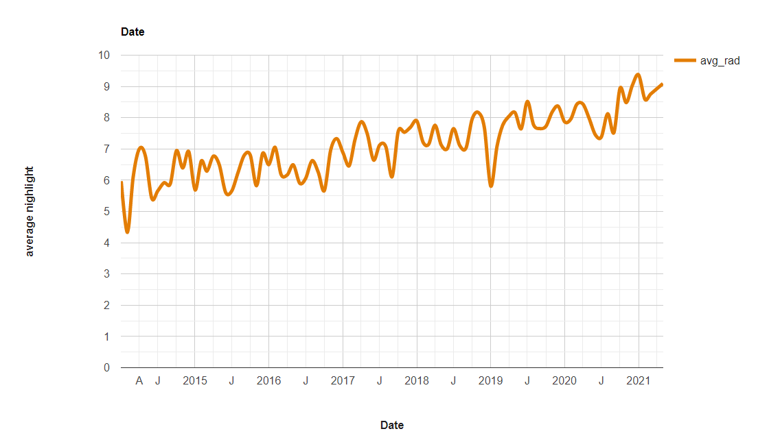 Google Earth Engine(GEE)——中国上海夜间灯光数据时序分析