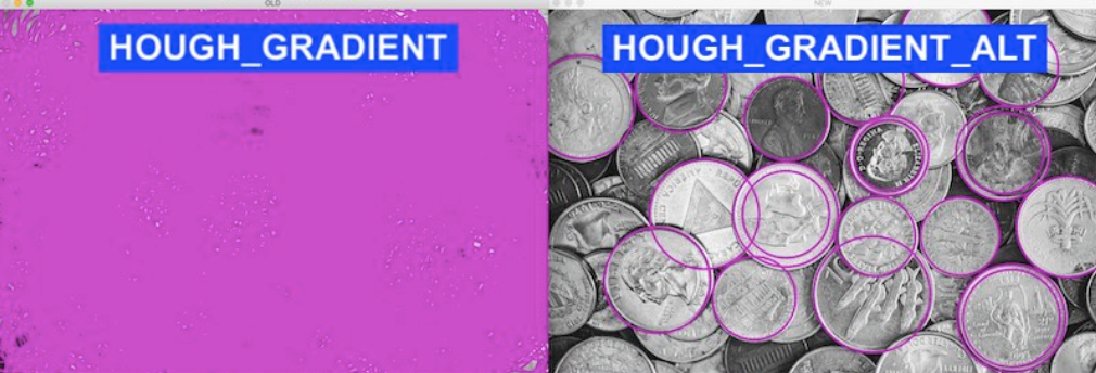 1、 imgproc 模块函数霍夫变换进行圆检测的HoughCircles() 新增了HOUGH_GRADIENT_ALT 实现,显著提高圆检测的召回率和精度,值得一试!