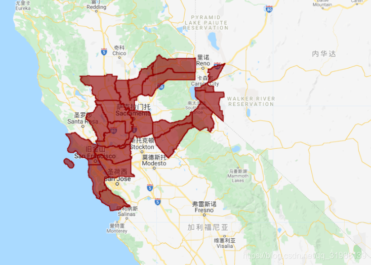Map.addLayer(smallCounties, {color: '900000'});