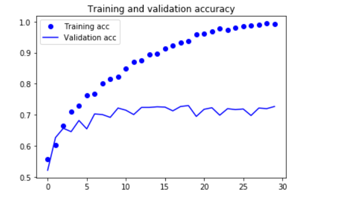 首先,在 2000 个训练样本上训练一个简单的小型卷积神经网络,不做任何正则化,为模型目标设定一个基准。这会得到 71% 的分类精度。此时主要的问题在于过拟合。然后,我们会介绍数据增强(data augmentation),它在计算机视觉领域是一种非常强大的降低过拟合的技术。使用数据增强之后,网络精度将提高到 82%。