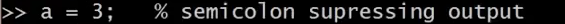 如果你想分配一个变量,但不希望在屏幕上显示结果,你可以在命令后加一个分号,可以抑制打印输出,敲入回车后,不打印任何东西。