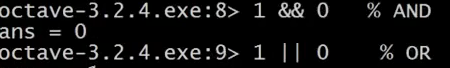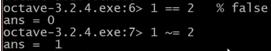 你也可以做逻辑运算,例如 1==2,计算结果为 false (假),这里的百分号命令表示注释,1==2 计算结果为假,这里用0表示。