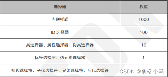 第一个选择器权重 = 100 + 10 + 1 = 111