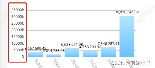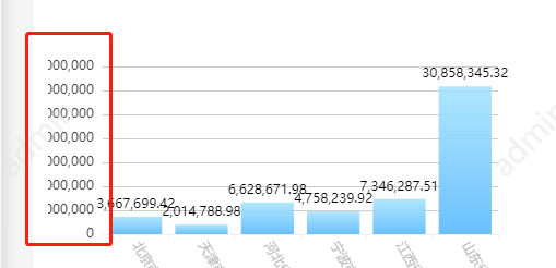在使用 Echarts 图表的过程中,有时候数值会很大导致该轴的刻度显示不全,如图: