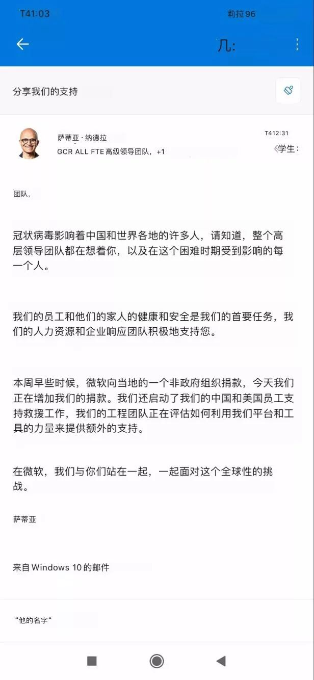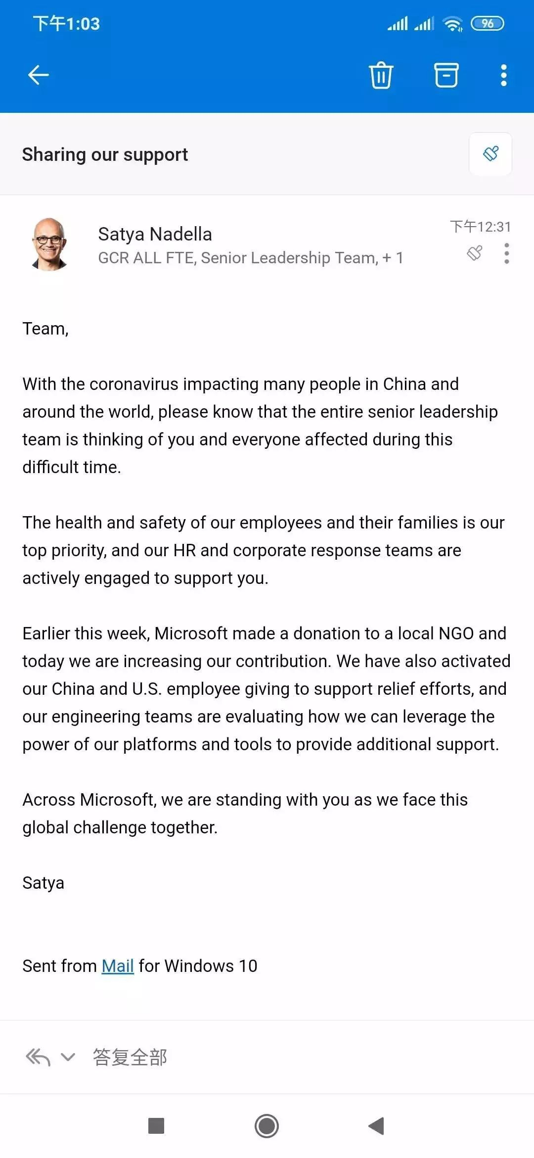 微软CEO发邮件表示:员工及其家人健康高于一切