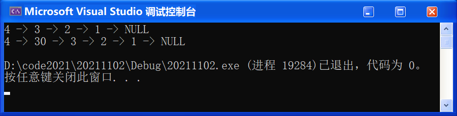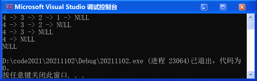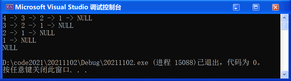 🔑 解读:我们想实现单链表的打印,我们就需要遍历整个链表。首先创建一个结构体指针 cur 来存放 pHead ,然后通过 cur 来把整个链表走一遍。只要 cur 不为 NULL,就说明还没有走完,就进入循环,循环体内打印出当前 cur->data 的内容,就实现了打印节点中的内容,随后将 cur 赋值成 cur->next ,使得 cur 指向它后面的节点。当 cur 为 NULL 时说明已经走完了,则跳出循环。最后我们再打印一个 "NULL" 把链表的尾部表示出来(便于调试观看)。