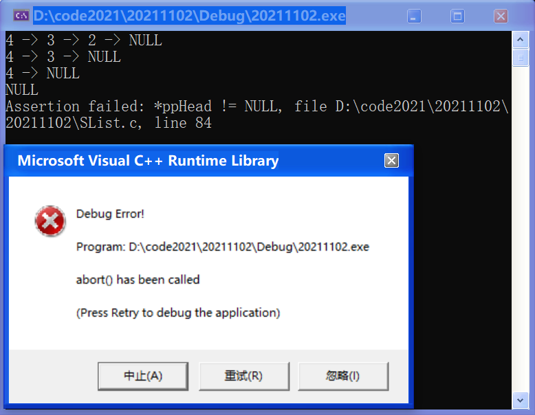 🔑 解读:尾删我们需要注意的是防止没有东西可删除,所以我们需要预防出现为空的情况。这里本人更倾向的是 assert 断言暴力解决的方法,和在顺序表章节中一样。使用断言就需要引入头文件 #include <assert.h> 。
