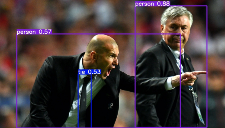 经过一步步的调试修改,最后终于可以成功运行了。可以看看运行后的结果,可以实现一些图片中物体的检测