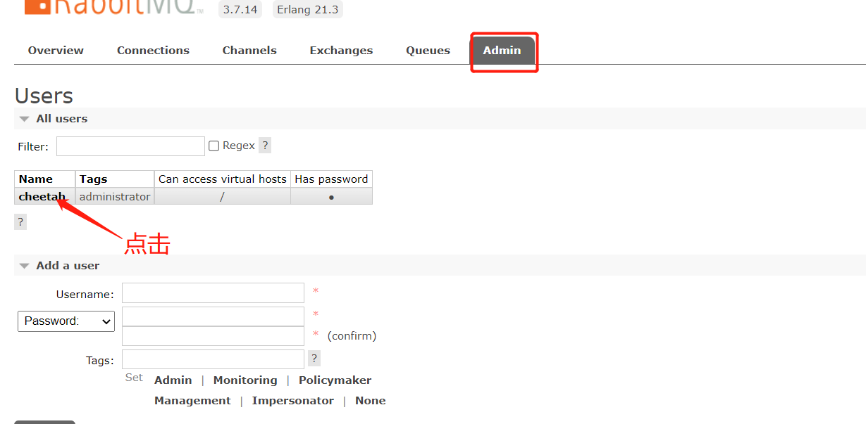 username: cheetah //自己的账户名