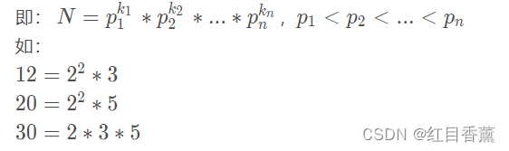 根据算术基本定理又称唯一分解定理,对于任何一个合数, 我们都可以用几个质数的幂的乘积来表示。