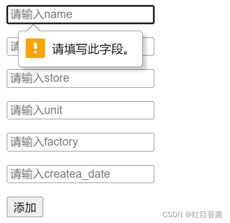 5. 用户点击“添加药品”超链接,则打开新增药品页面,填写完相关信息后,点击新增按钮,对字段进行非空检测,然后提交药品信息数据到数据库,且页面跳转到列表页面展示最新数据,如图 6 和图 7 所示。
