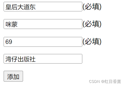 2. 点击“添加图书”链接,跳转至新增图书表单界面,如图 2 所示。
