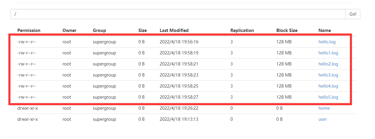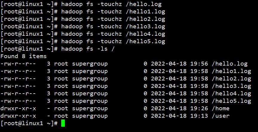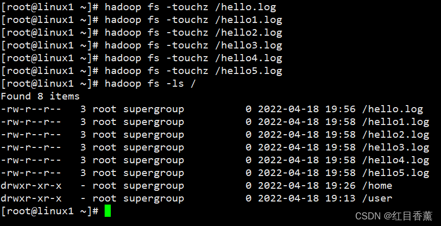 touchz:创建一个 0 字节的空文件