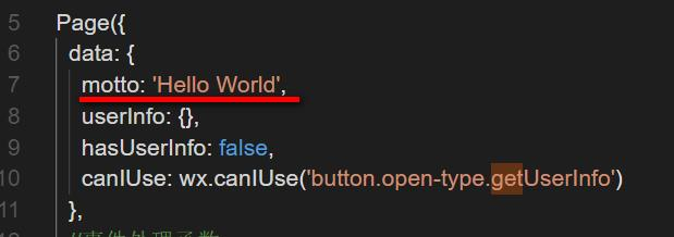 纯文本元素,显示的文本绑定到数据模型motto上。这个模型字段motto硬编码成Hello World,所以我们最后在小程序上看到显示的“Hello World"。