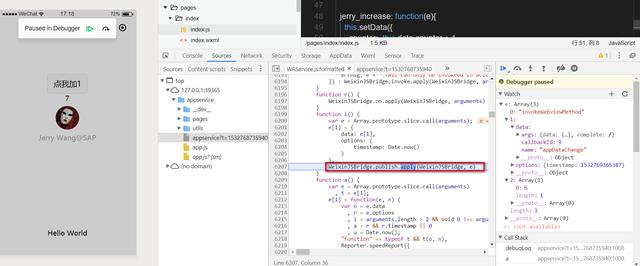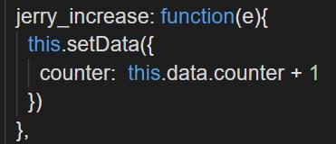 然后实现button的bindtap绑定的函数jerry_increase。可以看到这个事件处理函数有一个输入参数e:
