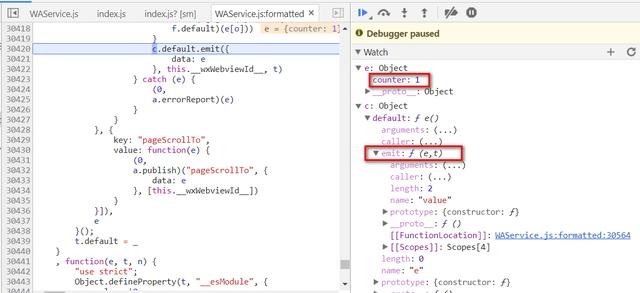 可以看到this.setData里面会调用微信框架的c.default.emit函数,把最新的数据通过emit函数投递出去。