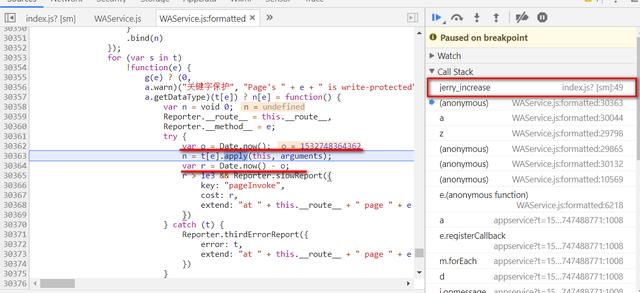 我们如果从当前控制器事件处理函数执行栈向外观察,发现它的前一层,即微信框架层的处理逻辑里,在调用事件处理函数前后分别取两个当前的时间戳。如果时间戳之差大于1000毫秒,会执行第30365行的Reporter.slowReport。由此我们看出,微信希望开发者实现的事件处理函数要尽可能高效,执行时间不能超过1秒。在手机使用场景里,1秒的等待时间对于最终用户来说是一个相当长的时间了。