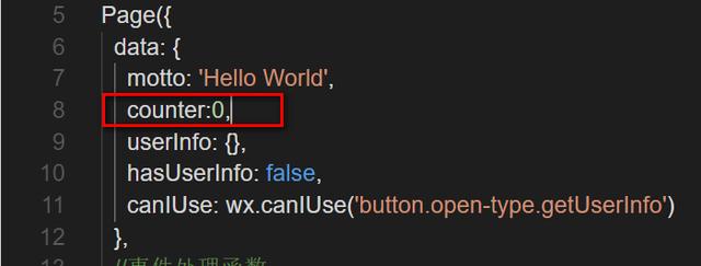 为此,首先需要在控制器index.js的data数据模型里增添一个counter字段。